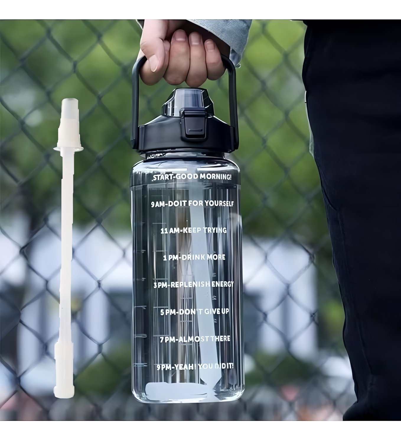 - Motivational Quote & Time Marker: With times and unique inspirational quote, this water bottle measures your daily water intake and keeps on track with your goal. A must have for any fitness goals.
