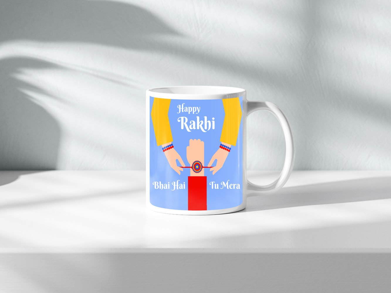 Message printed on mug : ” Happy Rakhi, Bhai hey tu mera”